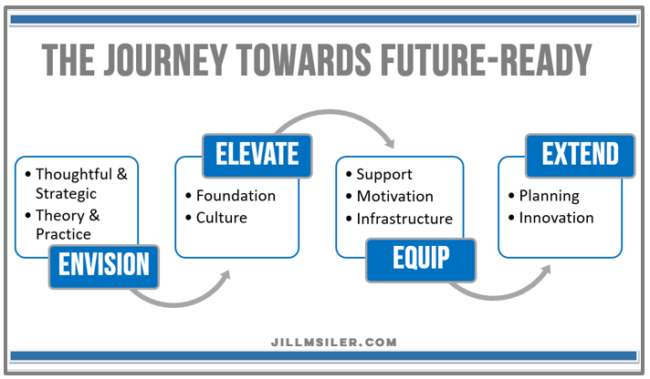 We are nowhere near where we need and want to be, but we are diligently making strides in our journey to help our students be more future-ready. And these steps (envision, elevate, equip and extend) have helped us tremendously down that path!