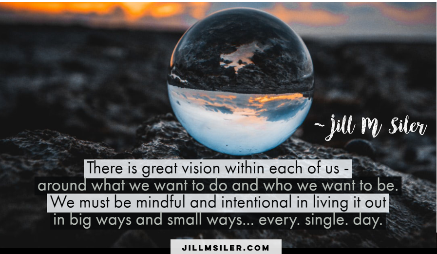 There is great vision within all of us – around what we want to do and who we want to be. But it takes us being mindful about and intentional in thinking about our vision, bringing people together to create our vision and then living it out – in big ways and small ways… every. single. day.