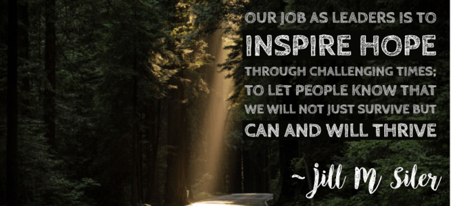 That is our job as leaders, to inspire hope through challenging times. To let people know that we will be able to not just to survive but can and will thrive through those moments.