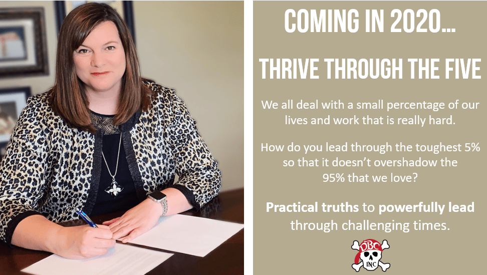I am so excited to share that I will be publishing a book with DBC Inc next year that is about leadership, and about life. I absolutely love what I do, but there is a small, small percentage of my work (and life) that is just really hard! And I don’t think I’m alone. So how we can we lead through that 5% in a way that allows us to THRIVE? I am excited and grateful and hopeful for the IMPACT and encouragement it will bring to those who are doing the real work every day!
