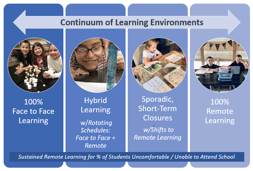 I hesitate even publishing this article, because there are more questions than answers. But we need to start addressing the questions and continue to be thoughtful about seeking answers. We need to lean on one another, share our best thinking and learn from those who are ahead of us. We may not know what the 2020-21 school year will look like at any given moment, but we do know that it will fall into some part of this continuum – and as educators and leaders, we must prepare for it all.