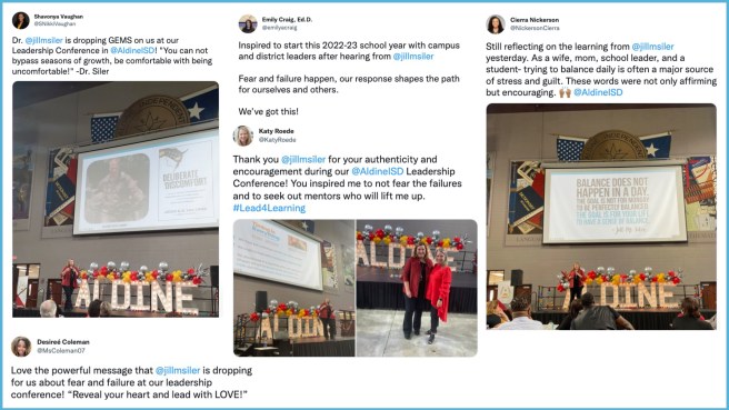 I absolutely LOVE what I do! And I have also never worked harder than I have in this profession – and especially in the past few years! If you’re looking for someone who loves this incredible work, but also recognizes and values how very challenging it can be, who can share inspiration and strategies to be our best selves in our work AND in our lives, I would love to be a part of the work you’re leading! I have had the privilege to keynote major conferences, convocations, facilitate leadership retreats and professional learning events. And I’d love to partner with you to help encourage, equip and inspire your team! For speaking inquiries, please email me at jillmsiler@gmail.com.