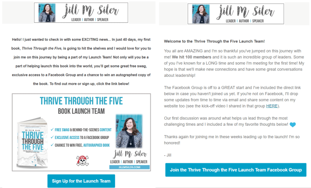 I also created a special Facebook Group for my Launch Team to create community amongst the group, foster discussion around the themes of the book and share special announcements of things I needed the team to do along the way. I can already see that I’ll transition this group to a more permanent Facebook Group once the launch is over. You can start discussions, share content from the book, host Facebook live events with guest speakers, etc.